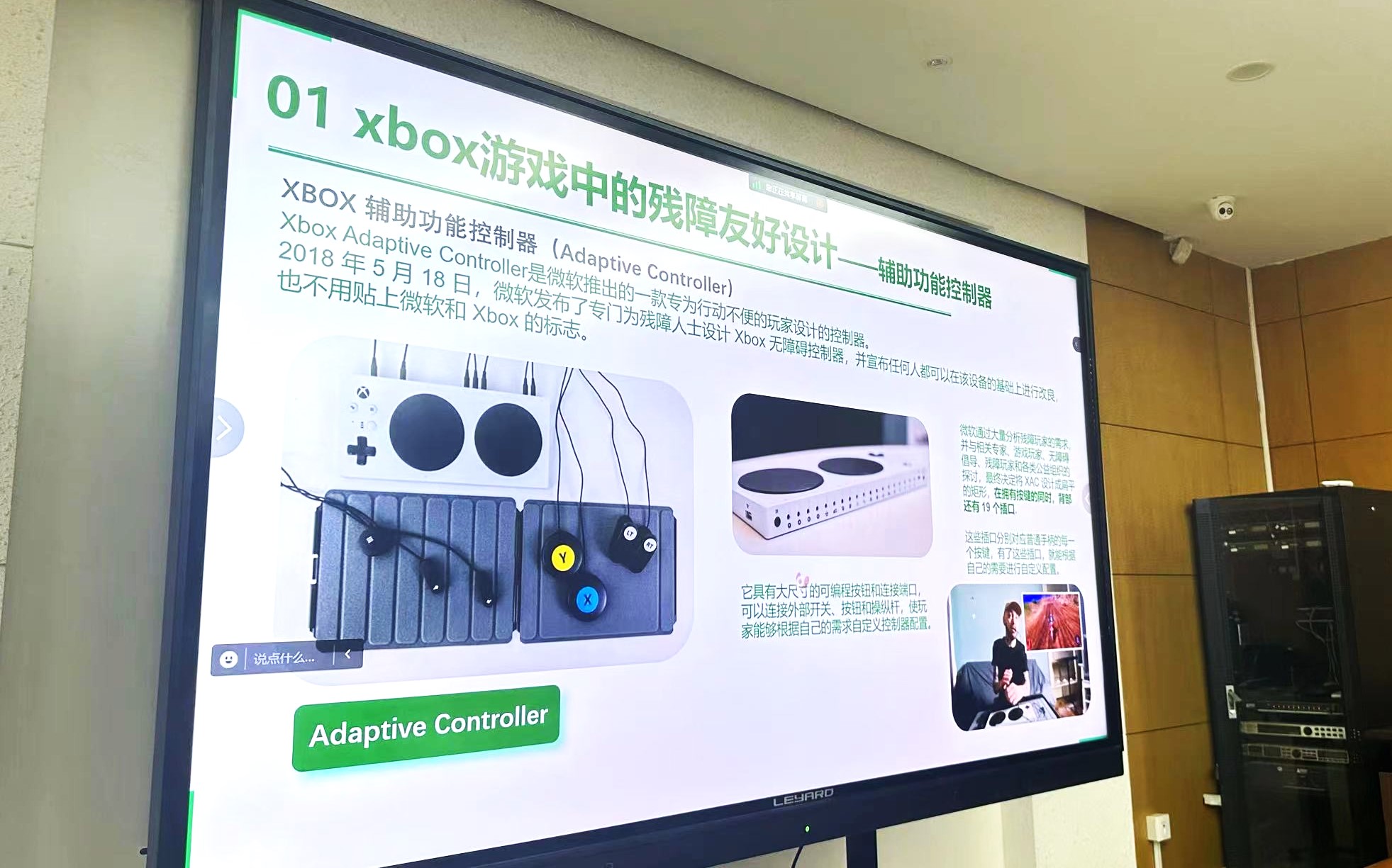 在研讨会上,上海百家合的副总经理朱颖老师详细介绍了公司在Xbox游戏平台中实施的残障友好设计。重点展示了Xbox辅助功能控制器,这是一种可完全自定义的改良控制器,专为行动不便的玩家设计。通过与各种外接设备的自由搭配,玩家可以根据自己的身体状况灵活享受游戏乐趣。